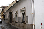 Az északi telekhatáron kerítésfal, benne két fejezetes, /eredetileg kőfaragvánnyal díszített/ pillér között kapu.