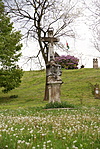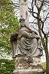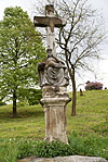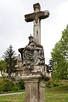 Temetőben, út mentén, enyhe emelkedőn álló kőkereszt. A párkányos talapzaton, stilizált sziklákon álló feszület tövében Mária, ölében a halott Krisztussal. Restaurálva 1994-ben.