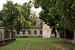 Az udvaron nyújtott téglalap alaprajzú, földszintes nyeregtetős gazdasági épület, átalakított homlokzattal.