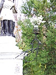 A posztamensen nagyméretű kovácsoltvas lámpástartó. ?