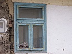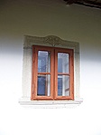 Könyöklőpárkányos kő ablakkeretein a zárókő helyén növénydísz.