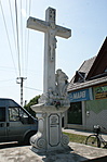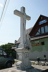 Az Utassi u. Petőfi u.-i torkolatában az É-i sarkon, lépcsős alépítményén volutás talapzat, fölötte sziklákon kereszt korpusszal. A kereszt lábánál Mária Magdolna térdelő alakja. Állíttatta Utasy István.
