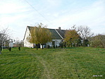 A falu szélén, szántóföld mellett szabadon álló, téglalap alaprajzú, földszintes, nyeregtetős épület, részben cserép, részben hullámpala héjazattal.