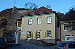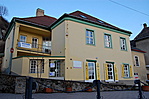 Az útkanyarban, egy kis kiteresedésben, domboldalban áll. Egyemeletes sarokház, de az utcavonaltól erősen hátratolva. Utcai homlokzata háromtengelyes, bal oldalon visszaugró erkélyes szakasz csatlakozik hozzá. Sima falfelületek, egyenes záródású, sokosztású ablakok vakolt szalgkeretben. A visszalépő tömeg emeletén oszlopos erkély. Bejárat ez alatt nyílik. Műemléki jelentőségű értéket nem képvisel, de a városképben hangulatos pont. Előtte római márföldkő a III. sz.-ból - talán védelmet érdemelne.