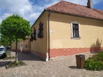 A Kossuth tér sarkán álló copf stílusú saroképület. Sárgára festett homlokzatainak alján mintegy 80 cm. magas, szürkére festett kőlábazat fut körbe. Tetőzete cseréppel fedett kontyolt nyeregtető. Kossuth téri főhomlokzata négytengelyes. Bal oldalon szegmensíves záródású, vörösmészkő keretelésű ajtó vezet a belsőbe. Az ajtóhoz az utcaszinttől négy vörösmészkő lépcső vezet fel. Tőle jobbra három, vörösmészkő keretelésű, egyenes záródású ablak, előttük copf kovácsoltvas rács. A balról számított 2. és 3. ablak között emléktábla. Az ablakok felett egyszerű főpárkány húzódik.