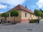 Az épület déli, a plébániatemplomra néző oldalhomlokzata - a terep lejtéséből következően - lépcsőzetesen emelkedik. A homlokzat öt ablaktengelyes, füles kőkeretük szemöldökében zárókő, aljukon tagozatos könyöklőpárkány. A keretek fehérre festettek. Az egyszerű párkány erre a homlokzatra is ráfordul.