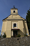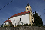 Dombon, szabadon álló, egyhajós templom, K-i homlokzata síkjában középtoronnyal, a hajónál keskenyebb, egyenes záródású szentéllyel, melynek D-i oldalához sekrestye kapcsolódik. Nyeregtetővel fedett, amely a szentélyzáródás felett lekontyolt. A kapu zárókövén 1890-es évszám. Karzatfeljáró kívülről, a D-i oldalon. Belseje csehsüveg boltozatos, a hajó bejárati oldalán karzat. Főoltárkép: 1760 körüli műhelymunka (Johann Lucas Kracker ?); szószék: klasszicista, 19. század eleje; a berendezés többi darabja későbbi. Orgona: 1885 (Steinreich Liót). Épült 1809-1822 között. A templom mellett: kőfeszület maradványai, 1841; a templom előtt: kőfeszület, korpusszal.