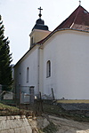 Magas dombon álló, szabadonálló beépitésű, téglalap alaprajyú egyhajós épület a homlokyat síkjában emelkedő toronnyal a hajónál keskenyebb , egyenes záródású syentéllyel és egz ésyakról csatlakoyó szentéllyel.Főhomlokzatának középső része kissé kiugrik. középen mélyitett tükör, benne alul kőkertes kapu, felette 18í9-es felirat. E felett még mindig a tükörben kosárives zárodású ablak. Ezt az egész épületen körbefutó koszorúmárvány , majd trapéz alakú oromzat követi, közepén kis falitükörrel. Az alacsony torony minden oldalán kosárives záródású ablakok figyelhetők meg. A hajó éjszaki és déli homlokzatát 2-2 kosárives ablak tagolja. Ezen felül az északi homlokzat nyugati végén egyenes záródású, kőkeretes ajtó vezet az orgonakarzatra. Bal oldalán egykori kereszt talapzata, 1841- es dátummal. A szentély déli oldalán egy ablak található. A nyeregtető cseréppel borított.