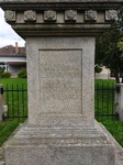 A település közepén, a templomkerttel szemben, a Szabadság teret átszelő Petőfi utcának a templommal szembeni oldalán füves téren szabadonálló, barokk Szentháromság oszlop. (Ez a terület egyébként az elbontott korábbi templom helye.) Hasáb alakú talapzaton rozettákkal díszített lábazati tag, melyen felfelé keskenyedő palmettás fejezetű pillér emelkedik, s ezen helyezkedik el a szoborcsoport. Az előoldalon a talapzaton felirattal: "N. O. M. VÁROS LAKOSSAINAK BUZGO AJÁNLÁSÁBÓL 1844. ÉVBEN".