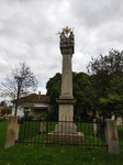 Az r. k. templommal (trsz.: 5784) szemben, kő sarokpillérek közötti léckerítéssel körülvett területen álló Szentháromság-oszlop. Hasáb alakú, lábazatos-párkányos talapzaton felfelé keskenyedő, palmettás fejezetű négyzetes pillér, rajta a szoborcsoport. A talapzat előoldalán található felirat szerint a mezőváros lakosai állíttatták 1844-ben.