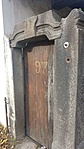 Nyeregtetős. Kőkapuzatának hajlított, profilált szemöldökgerendán zárókő: J. H. kezdőbetűk, alattuk 1857-es évszám olvasható.