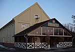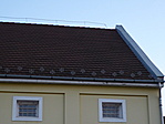 Hosszoldala héttengelyes, fekvő téglalap alakú ablakokkal, fehérre festett, sárga ablakkeretekkel. Hosszoldala közepén süllyesztett mezőben nyílik az egyenes záródású ajtó, a faltükör az ajtó felett szegmensíves.