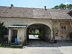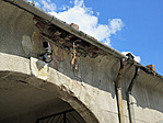 A kapu felett annyira hiányos az eresz, hogy az ereszcsatorna mellett átsüt a napfény...