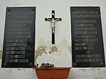 A templomkertben 1910-es Madonna-szobor, s vele azonos korú feszület áll.