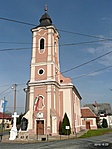 Külső: Az egyhajós templom poligonális záródású szentélye a hajótérnél keskenyebb, tornya a nyugati homlokzat elé lép. A négyszintes, pilaszterekkel keretezett toronytestet sarkain átlósan támpillérekkel erősítették meg. Bejárata egyenes záródású, kőkeretes, felette világháborús emléktábla, majd a karzatszinten elfalazott lantablak következik. A templomtesten is körbefutó főpárkány felett előbb körablakok, majd félkörzáródású, zárókődíszes, konzoldíszes, kötényes harangablakok találhatók. Az órahelyes párkány felett harang alakú sisak emelkedik.
