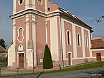 A falsávval tagolt nyugati homlokzat törtíves oromzattal kapcsolódik a toronytesthez. A hajótér külső falait széles falsávok osztják, északon 3(vak)+1, délen 3 félkörzáródású, konzoldíszes ablak töri át. A déli fal első szakaszában egyenes záródású, zárókődíszes, keretezett ajtó. A déli falhoz kontyolt nyeregtetős sekrestye kapcsolódik.