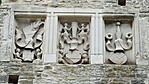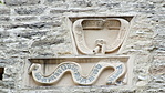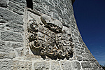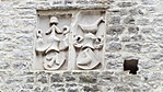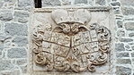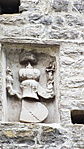 A kastély kapuja fölött címerek az egykori urakra emlékeztetnek.