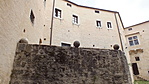 Az udvarban mély kút, ágyú golyókkal körberakva.