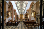 A középkor során több tűzvész is sújtotta a templomot. A 15. században a kereszthajót és a kórust, a 16. század végén pedig a főhajót is gótikus boltozattal látták el. A 17. században kis mértékű barokk átalakításra került sor, ekkor kaptak a tornyok új sisakot. A belső berendezés többnyire barokk kori, a kifestések kisebb része román, többsége gótikus.