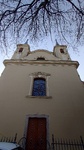 Egyszerű megjelenésű homlokzatán az erőteljes tagozású főpárkány fölött, a volutás oromfalat két négyzetes alaprajzú torony veszi közre.