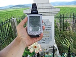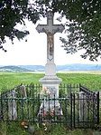 A kereszt festése sajnos kopik, a feliraton is hiányos már. Körülötte fém kerítés, illetve nagy fák láthatóak, utóbbiak már messziről felismerhetővé teszik (talán ezért szerepel a térképeken).