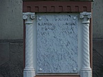 A kereszt valószínűleg eredeti, de a tábláról nagyon ordít, hogy csak utólag, valószínűleg egy felújítás során tették rá. Sajnos a betűk festése már szinte teljesen lekopott.