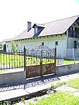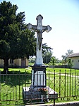 A kereszt a tiszalöki-tiszatardosi komphoz vezető műút melletti telken áll, lényegében a falu végén. Felirata nem látszik (a nyomokból ítélve elképzelhető, hogy lemeszelték), ám az előtte levő vaskerítésen az ARIA, egy hal, két kulcs és egyéb jelképek vannak, ahogy a mellette levő nagykapun is kereszt látszik. Valószínűleg valamilyen egyházi épület (talán parókia) lehetett a mögötte levő ház, és annak volt a keresztje.