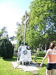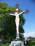 A kereszt a görögkatolikus templom kertjében áll, felső része fémből készült, talapzatán jókora tábla, sok névvel.