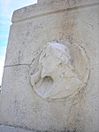 A talapzat felső részén fej és kéz domborműves ábrázolása.