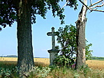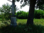 A korpusz hiányzik, a nyárfák gyökerei megdöntötték a keresztet.