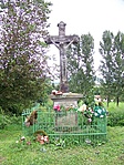 A kereszt feliratának felső része nehezen olvasható, az egész kereszten látszik már a kora. Egyébként a falu elején (vagy végén, nézőpont kérdése) áll.