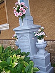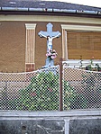 A kereszt egy magánház előkertjében áll. Talapzatának alsó részét virágok takarják, a látható felirat pedig nem utal sem az állítás idejére, sem az állíttatóra.