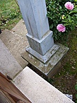 A kereszt egy magánház előkertjében áll, magas deszkakerítés mögött, ezért csak a tulajdonos engedélyével lehetett lefotózni. Talapzatán legalább 6 sornyi szöveg látszik, ám az nemigen olvasható, csak egyes szavakat lehet kibetűzni.
