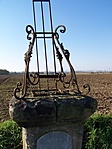 A kereszt vasból készült, szántóföld szélén áll. Valószínűleg valamikor valami traktorral nekimehettek, ettől a vas rész kicsit elferdült.