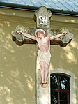 A kereszt a templom kertjében áll, jó állapotú.