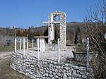Kb. 7x9 m alapterületű 80 cm magas terméskő alapzaton murvával burkolt területen, egy 3 m magas terméskőből épített harangláb kb. 30 cm átmérőjű bronz haranggal (a harang jelenleg nincs a helyén). A harangláb előtt kb. 1,5 m-rel áll egy 0,5 m magas műkő lábazatú, 2,5 m magas feszület.
