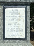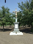 Karbantartott kereszt magánterületen, kerítésen belül.