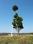 Jó állapotú kereszt egy különleges fa alatt.