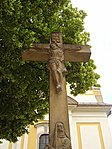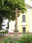 Nagyon szépen rendben tartott templomkertben lévő kereszt.