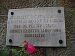 "Ezen kereszt egy évszázadon át a Temető és Árpád utca sarkán. 1962-től pedig e helyen hirdeti Krisztus áldozatos szeretetét."