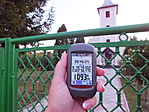 A késői időpont miatt a templom kertje már be volt zárva. A GPS-es kép a kerítésen kívülről készült.