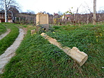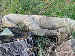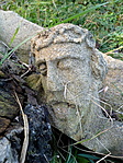 A kereszt ledőlt, darabjai szerte szét, a Krisztus feje és a karjai pár méterre a talapzattól