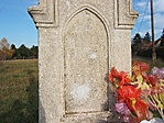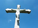 Felirata nagyon rosszul olvasható. Krisztus szobrának lábfejei letörtek.