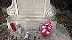 Felújítás dátuma kis táblán a talapzaton 1998, kissé megkopott.