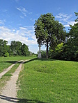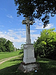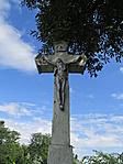 A KANYARBAN ÁLL EGY KIS DOMBON EGY FÖLDES ÚT ÉS EGY NAGY FA MELLETT. BETONBÓL KÉSZÜLT A TEST ÖNTVÉNYBŐL VAN JÓ ÁLLAPOTÚ.