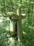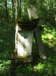A kereszt letörött a talapzatról, de még mindkettő megvan. Dísztelen, szobor nélküli kereszt, felirata sincs.