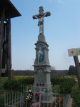 Szépen fekújított, példásan rendben tartott kereszt! Egy harangláb is áll mellette.