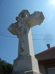 Viszonylag jó állapotú kereszt utólag ráhelyezett márványtáblával.