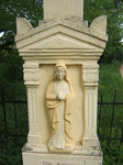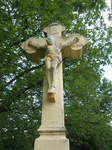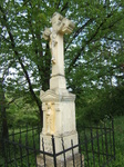 Jó állapotú, gondozott kereszt, sárgára festve, csak a Krisztus-szobor feje sérült csúnyán.
