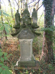 Szép, díszes emlékkereszt lenne, de sajnos a kereszt szára és teteje teljesen hiányzik.
